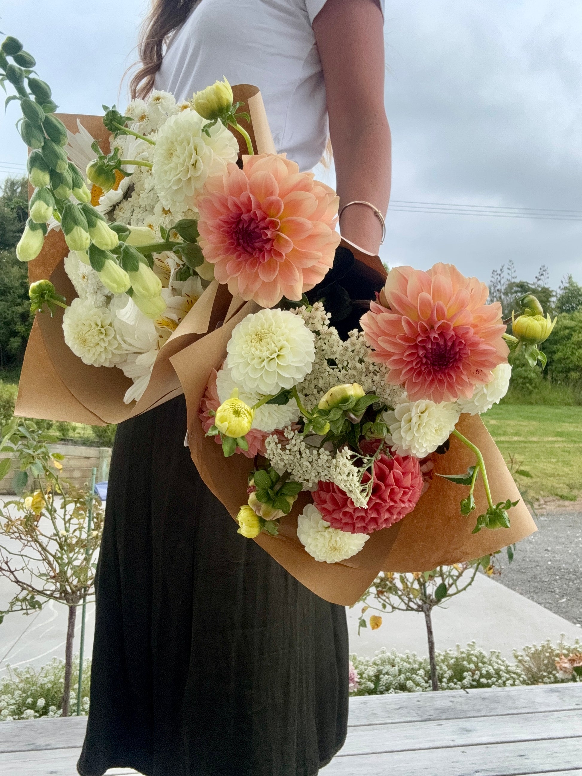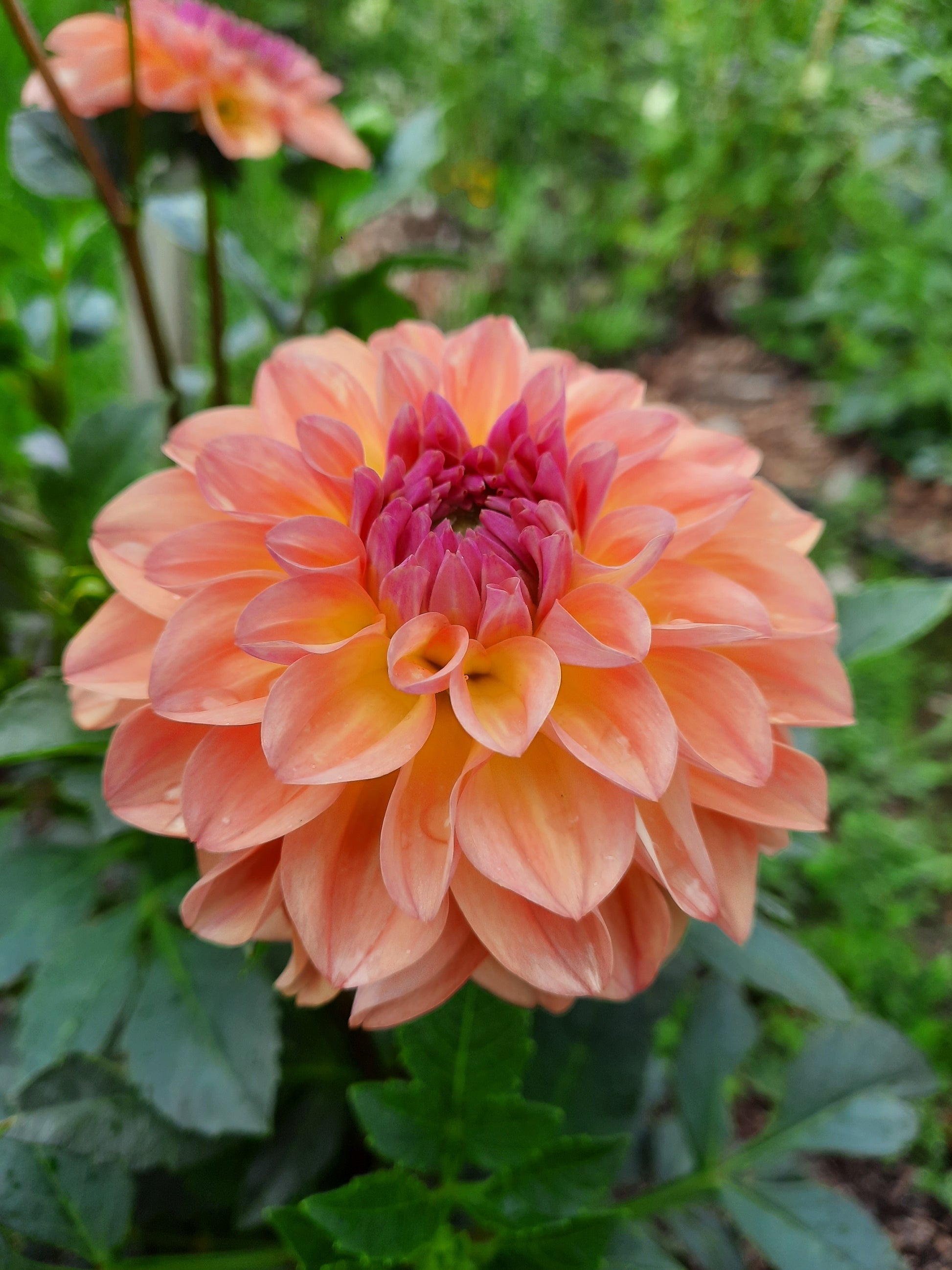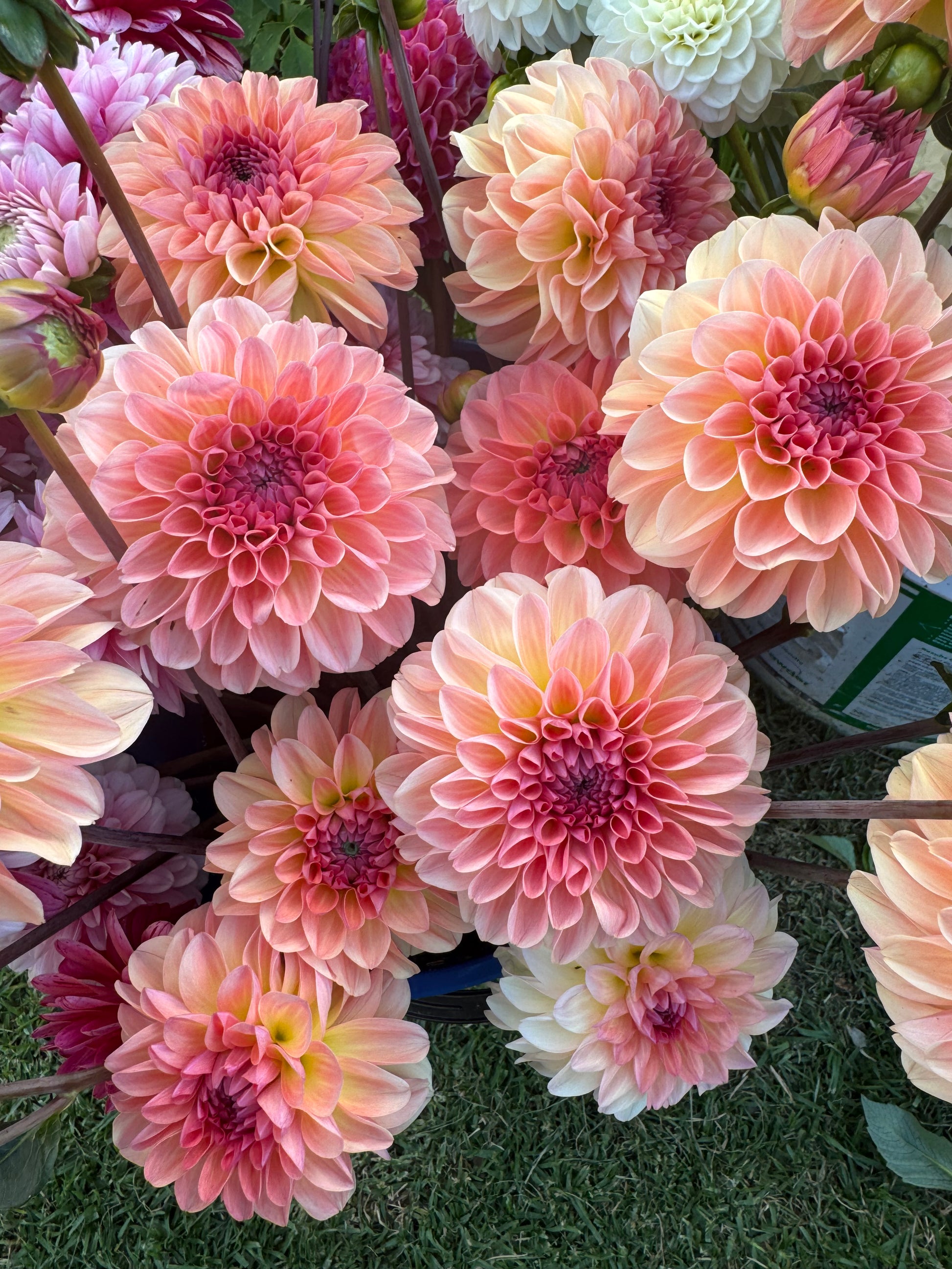 Glowing warm-melon blooms with a peach-lavender center over dark foliage. Sebastian is one of my faves producing compact plants that pump out armloads of blooms.