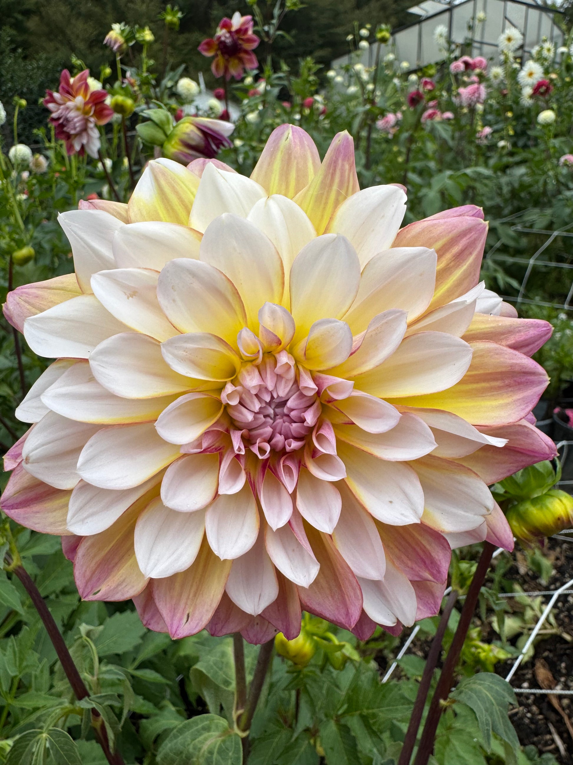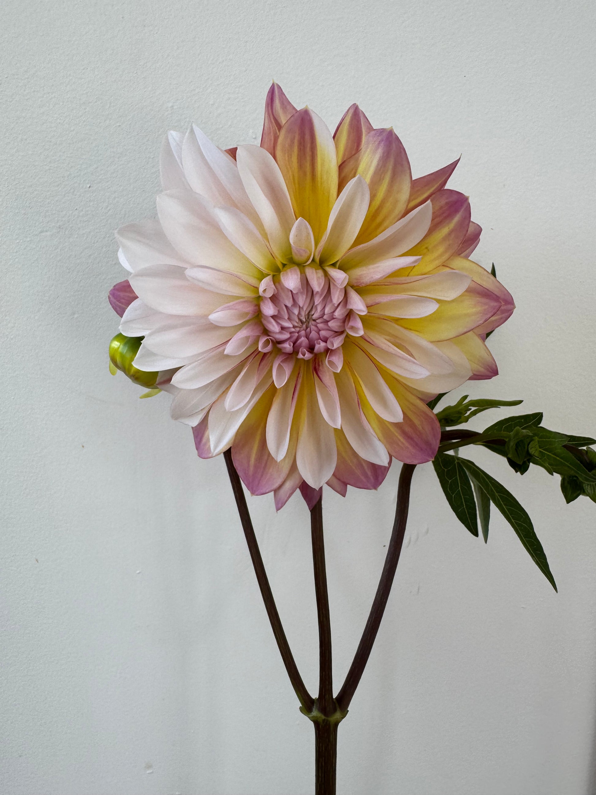 Creamy white petals streaked with an array of colours like cherry red, orange and yellow. Like a beautiful sunset in your garden.