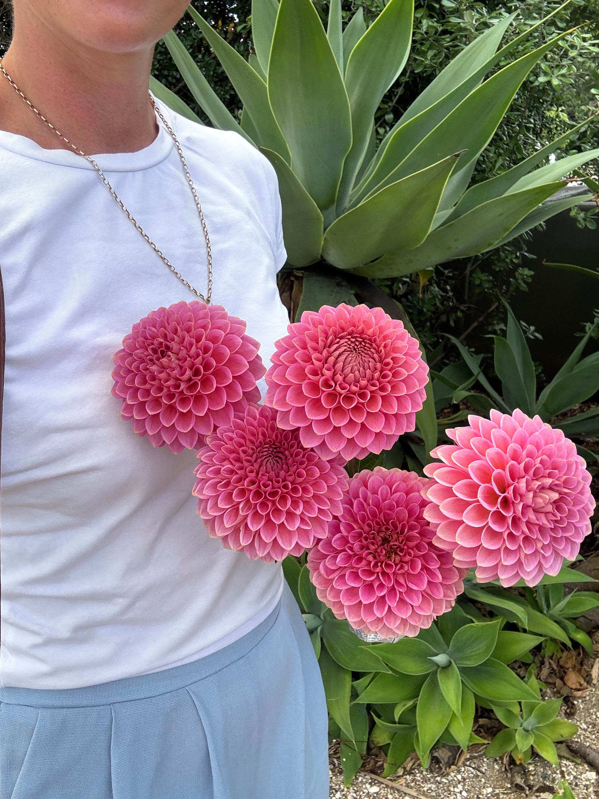 A beautiful dahlia featuring soft, light pink, ball shaped blooms with a very high petal count and long stems, making it an excellent cut flower.